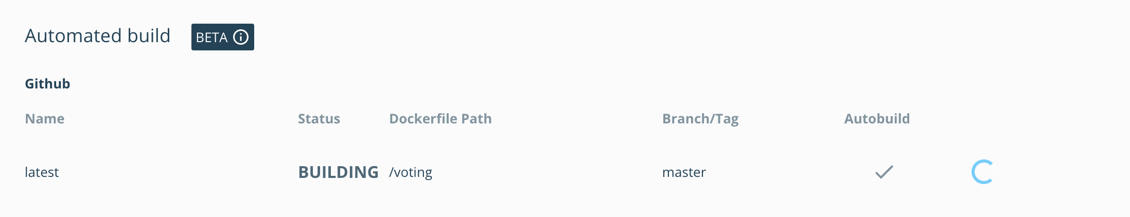 In the Docker Cloud web UI, navigate back to the voting repo and notice that the status is BUILDING.